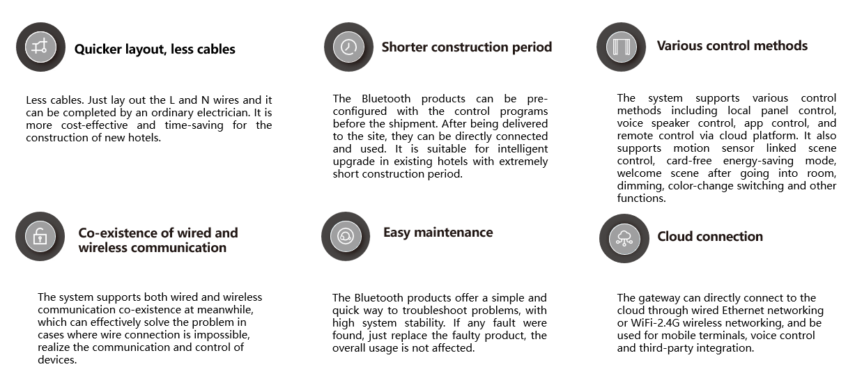 Lobby control: air conditioner will be turned on by lobby while the guests check in, As soon as the guests enter, they will have a comfortable and warm experience.