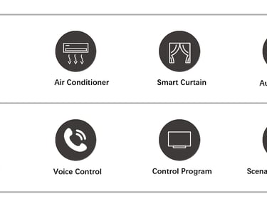 Voice Control: voice controls air conditioner, TV, curtain and scenes (such as voice control brightness pattern- light on, curtain open automatically.